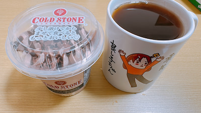 チョコアイスで、中にスポンジも入っていて混ぜて食べます。