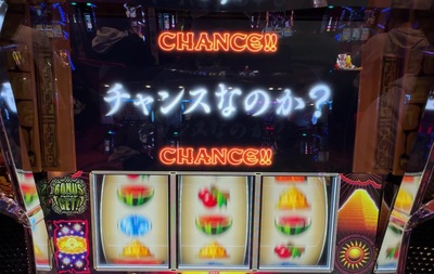 チャンス目を引けばボーナス確定。スイカやチェリーは無限高確率への移行抽選が行われています。