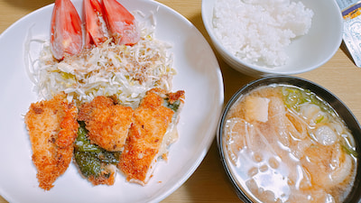あとは小麦粉と水を溶いたものにつけてパン粉をまぶして揚げるだけです。