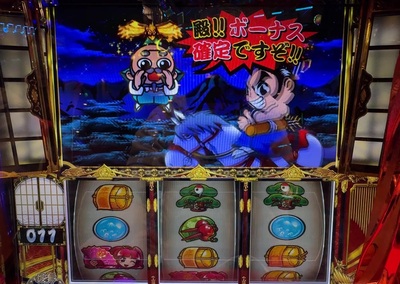 でもここまでのボーナスで、終了画面のカードは一度も出てません。やっぱり低設定だと思います。